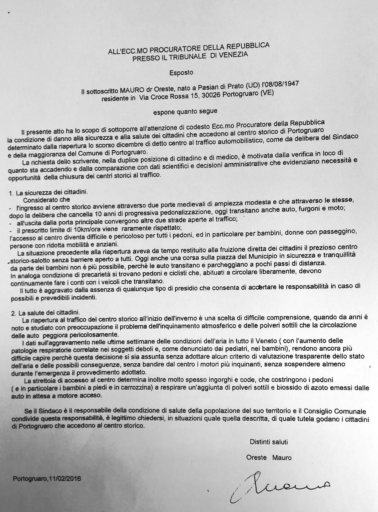 E’ PARADOSSALE che si possa ritenere che questo tipo di progetto possa avere come finalità la riduzione del traffico e dell’inquinamento e porti a una riduzione dei veicoli in sosta in prossimità della scuola; ancor di più se pensiamo che la stessa Giunta Senatore un anno fa ha incentivato il traffico in centro storico, aprendo al transito degli autoveicoli Borgo S. Giovanni e modificando tutta la viabilità , senza tener conto del Piano Urbano del Traffico vigente, che anche con questo progetto viene totalmente disatteso, dato che il parcheggio di via Valle nel Piano non è previsto!